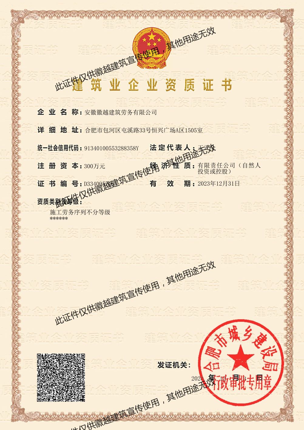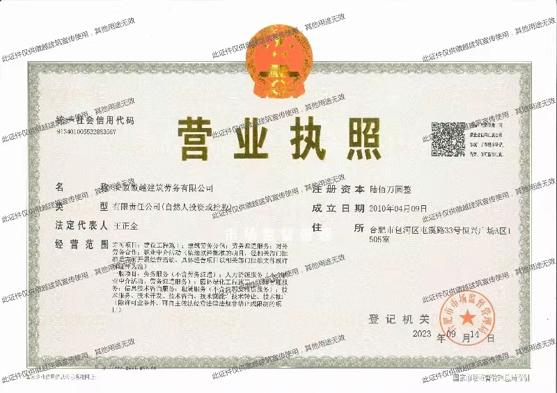 徽越公司自2008年中建總公司及多家世界500強企業授權招工資格以來,在同行業知名度信譽 度較高?;赵焦臼前不帐∫患医涍^合肥市工商行政管理局(安徽省工商行政管理局備案審核)、合肥市勞動和社會保障局及合肥市建設委員會(安徽省建設廳資質審批)審核批準成立的正規合法的且具有豐富建筑勞務輸出和項目施工管理經驗的信譽良好的勞務派遣和勞務分包...>>查看詳情